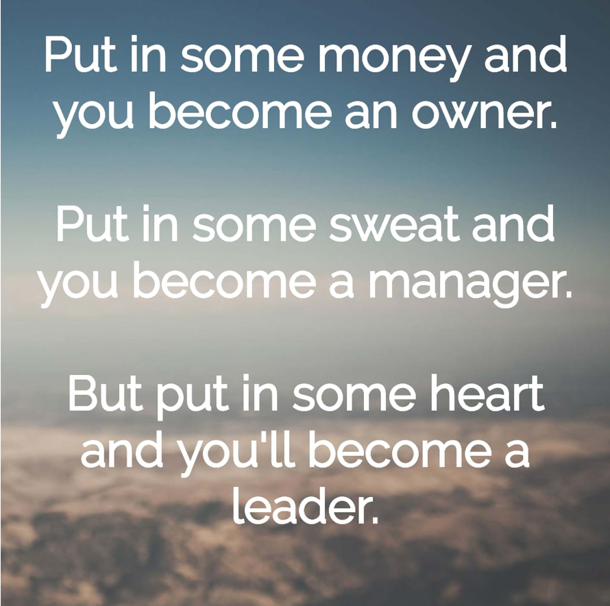 The biggest mistake we make in owner-operated professions such as ours is we mix up the three. Owners, Managers and Leaders are all DIFFERENT JOBS. Some people have the capacity to be all three, but most are best suited for one.